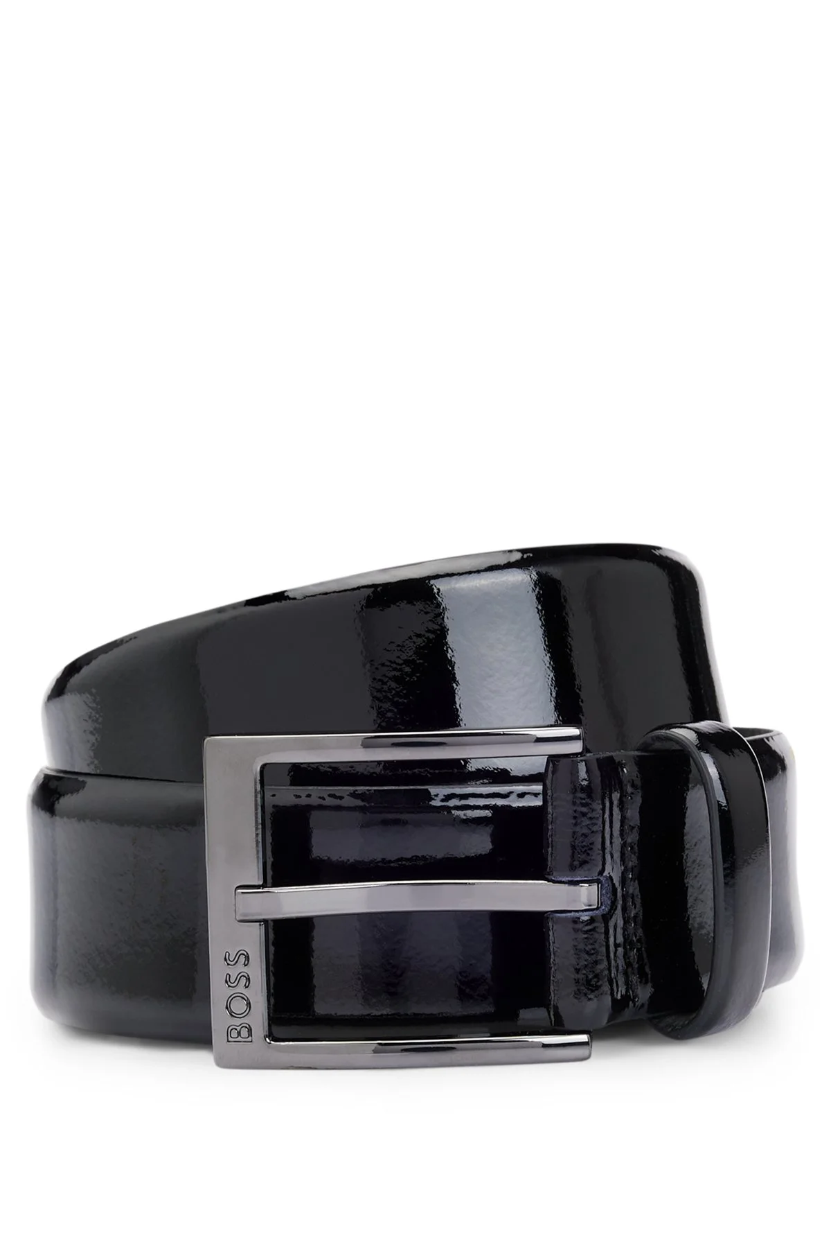 SIZE AND FIT The model wears a size 34 and is 6'1" tall with a, 35" chest, 29" waist and 31" hips. DETAILS Elloy-Pa_Sz35 - 50530285 A signature 3.5cm belt in Italian patent leather by BOSS. This accessory has a gunmetal buckle with an engraved logo. For the best fit, we advise ordering a belt one size larger than your waist size. Engraved logo on closure Width: 3,5 cm (1.4 inches) Hardware finishing: Polished gunmetal hardware Fully lined QUALITY & CARE INSTRUCTIONS Quality: 100% Cow leather