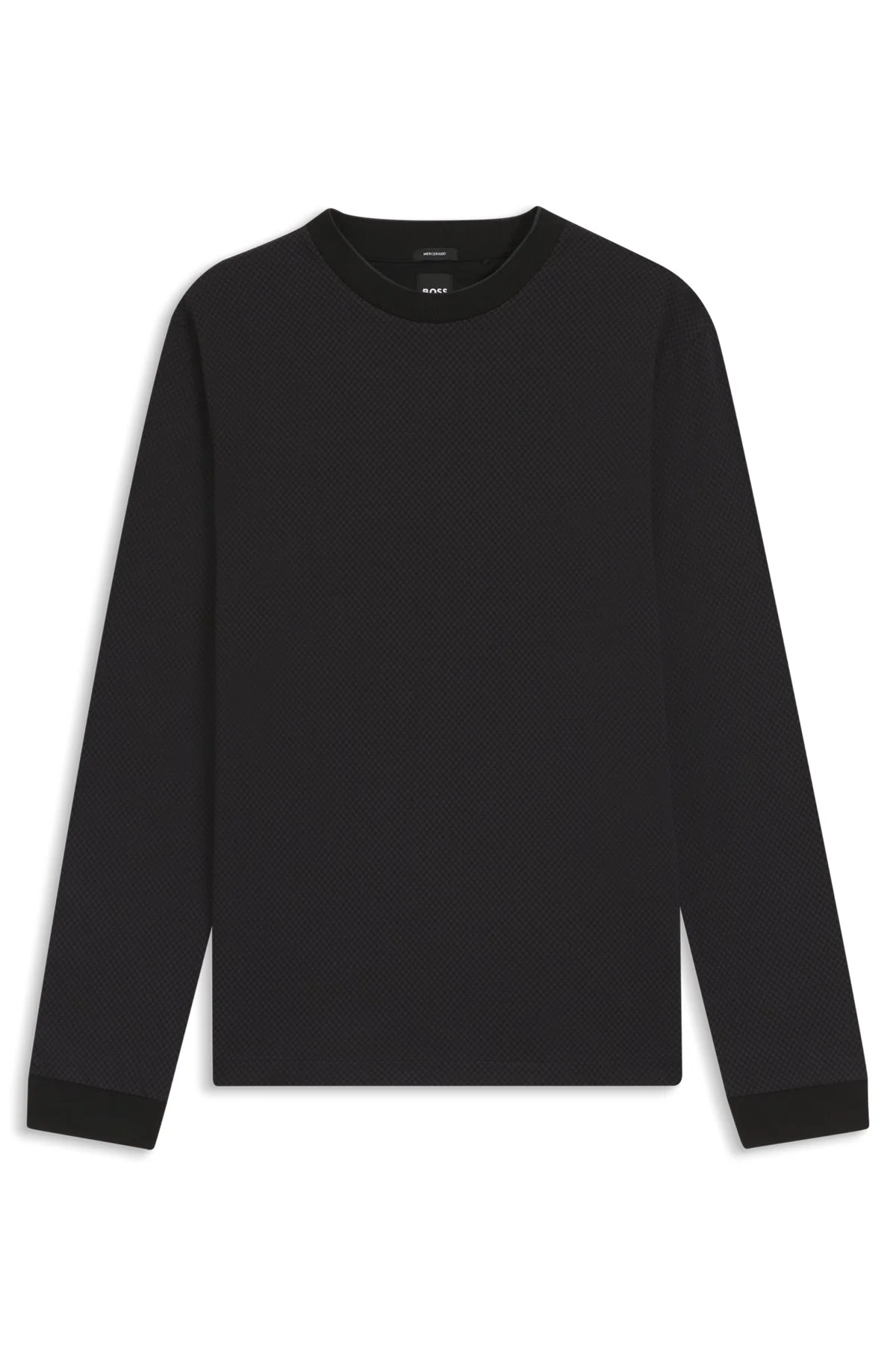 DETAILS With its rich, two-tone structure and extra-soft mercerized cotton, this BOSS Menswear T-shirt will elevate any casual look. Regular fit Regular fit Neckline: Crew neck Long sleeves Side slit Standard length H-Talley 06 - 50554689 QUALITY & CARE INSTRUCTIONS Material: 100% Cotton Machine Wash Cold Gentle Do Not Bleach Do Not Tumble Dry Reduced Dry Clean Iron Low Heat