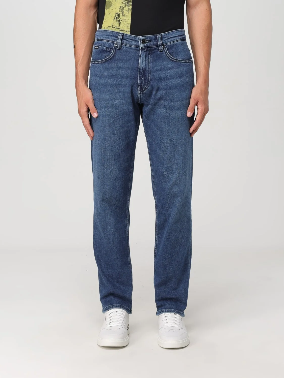 DESCRIPTION - Pockets: 5-pocket - Waist: With loops - Bottom: With straight hemline - Logo: With logo - Closure: With button and zip - Materials: Cotton denim - Pattern: Plain-colored DETAILS AND CARE Composition not available SIZE AND FIT Sizes not available Size and fit Straight Designer code: 50524015 416 Giglio Code: F95541 Designer: Boss Collection: Boss Men Category: Clothing Boss