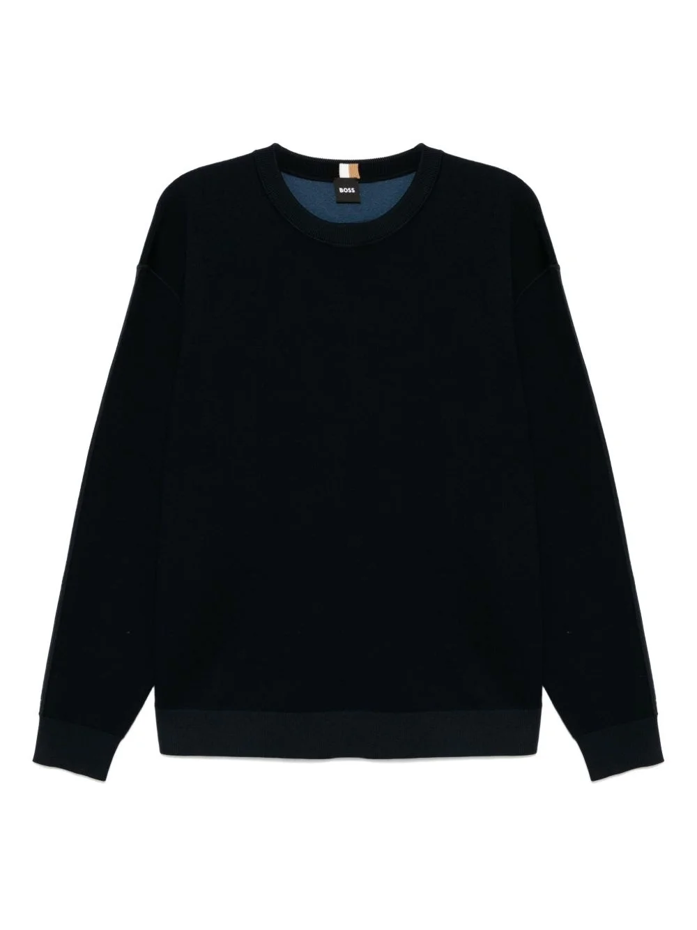 Long Sleeved Crewneck jumper Highlights - Navy blue - Ribbed cuffs and hem - Drop shoulder - Mini logo tag Imported Composition Cotton 70%, Virgin Wool 30%
