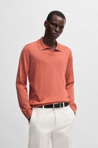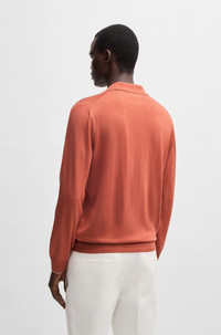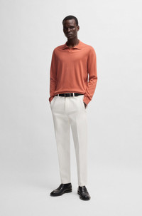 SIZE AND FIT The model wears a size M and is 6'1" tall with a, 33" chest, 24" waist and 36" hips. DETAILS L-Beso - 50530839 An elegant sweater knitted in silk and cotton by BOSS Menswear. This layer is cut to a regular fit and topped with a Johnny collar. Regular fit Neckline: Polo collar Long sleeves Standard length QUALITY & CARE INSTRUCTIONS Cold, gentle machine wash; reduced spin speed. Iron Medium Heat Dry Clean Only Do Not Tumble Dry Do Not Bleach Quality: 57% Silk, 43% Cotton