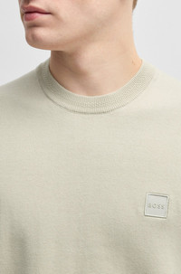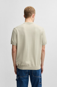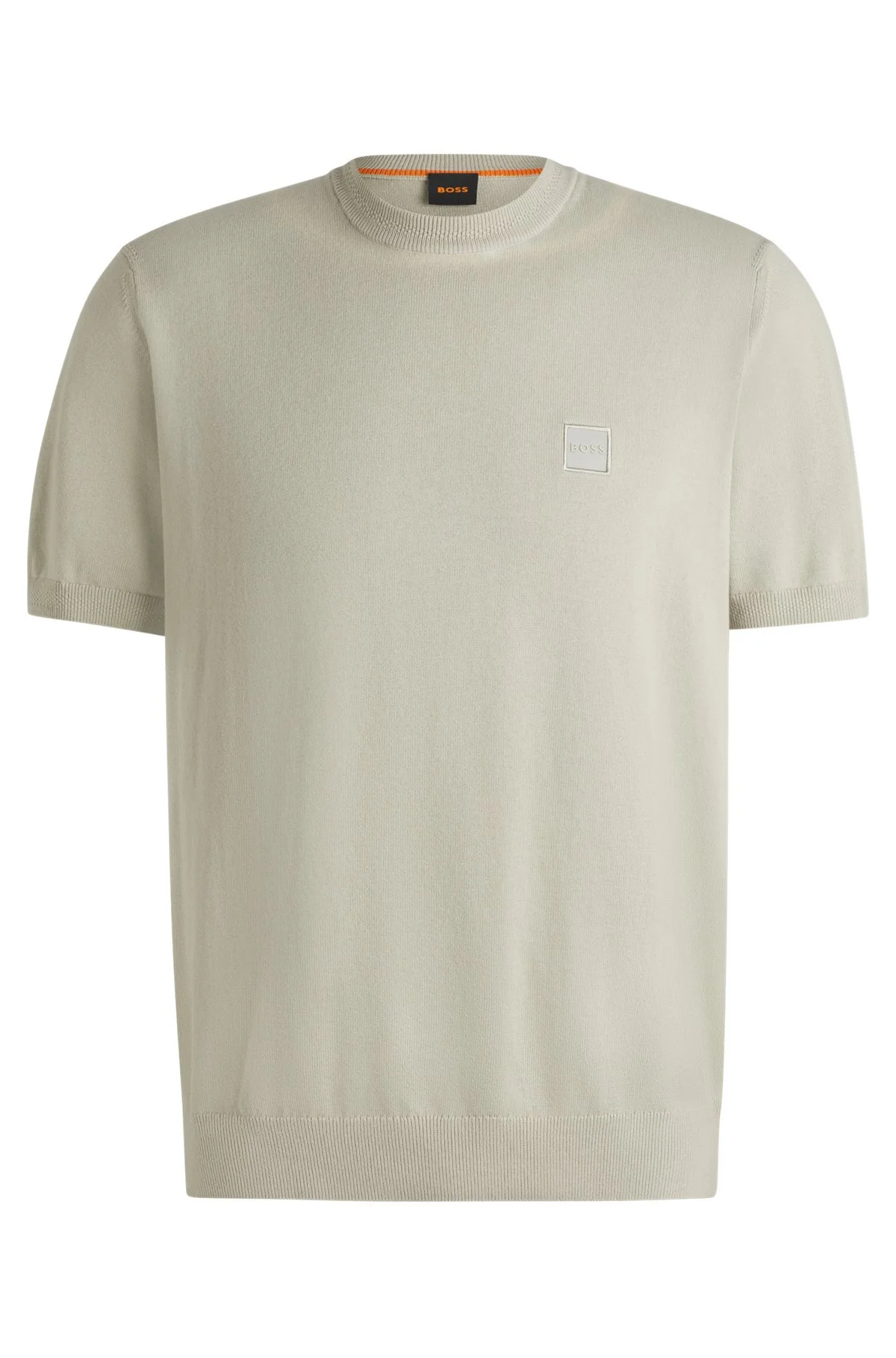 SIZE AND FIT The model wears a size L and is 6'1" tall with a, 36" chest, 27" waist and 36" hips. DETAILS Kanache - 50538267 Knitted in lightweight cotton with luxurious cashmere, this BOSS Menswear T-shirt has a comfortable, relaxed fit for easygoing style. Refined tonal satin logo patch. This product is partly made with cotton. Relaxed fit Neckline: Crew neck Short sleeves Standard length QUALITY & CARE INSTRUCTIONS Do Not Bleach Dry Clean Only Do Not Tumble Dry Cold, gentle machine wash; reduced spin speed. Quality: 95% Cotton, 5% Cashmere Iron Low Heat