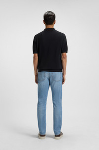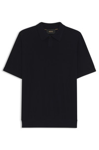 DETAILS L-Immago - 50543220 In fine merino wool with a comfortable structure, this BOSS Menswear knit polo is a luxe travel piece. Natural breathability and temperature control. Regular fit. Regular fit Neckline: Polo collar Short sleeves Standard length QUALITY & CARE INSTRUCTIONS Iron Medium Heat Quality: 100% Virgin wool Do Not Tumble Dry Cold, gentle machine wash; reduced spin speed. Do Not Bleach Dry Clean Only
