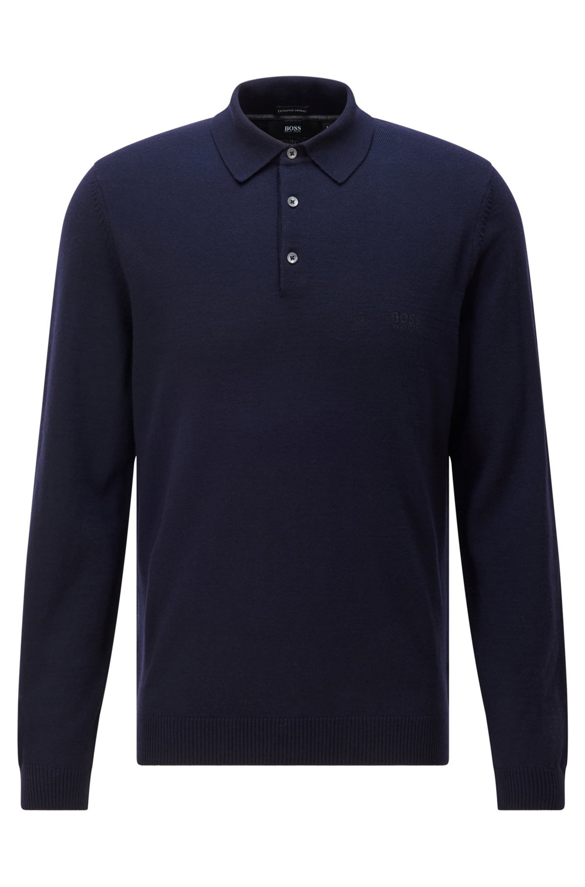 SIZE AND FIT The model wears a size M and is 6'1" tall with a, 0" chest, 29" waist and 35" hips. DETAILS Banet-E - 50298478 With a tonal logo for a subtle touch, this BOSS Menswear sweater has an extra-soft and breathable feel. Slim cut with a polo collar. Slim fit Neckline: Polo collar Long sleeves Standard length QUALITY & CARE INSTRUCTIONS Do Not Bleach Cold, gentle machine wash; reduced spin speed. Do Not Tumble Dry Quality: 100% Virgin wool Iron Medium Heat Dry Clean Only
