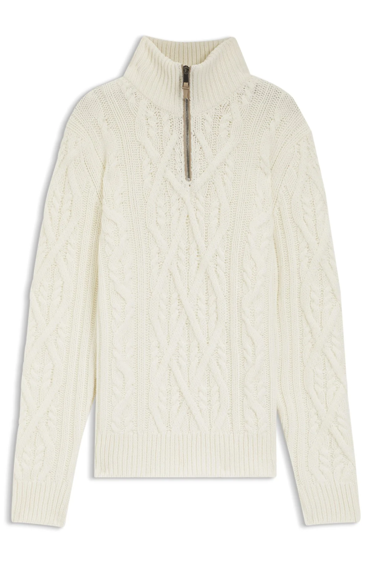 SIZE AND FIT The model wears a size M and is 6'1" tall with a, 36" chest, 29" waist and 36" hips. DETAILS Knitted in rich yarns made from virgin wool and cashmere, this regular-fit BOSS Menswear sweater is a luxurious layer. Chunky cable structure. Zip neck. Regular fit Neckline: Zip neck Long sleeves Standard length L-Harpreno - 50557441 QUALITY & CARE INSTRUCTIONS Dry Clean Only Cold, gentle machine wash; reduced spin speed. Do Not Bleach Iron Medium Heat Material: 70% Virgin wool, 30% Cashmere Do Not Tumble Dry