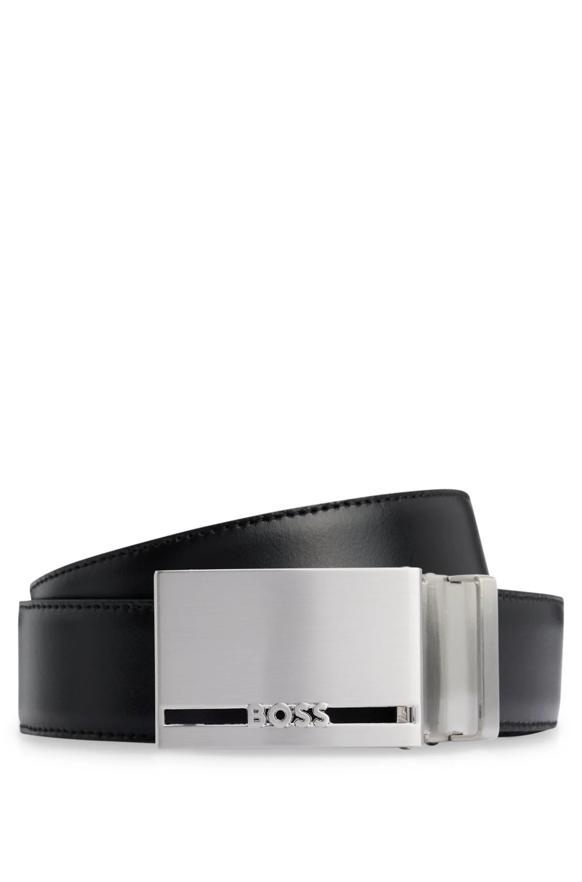 SIZE AND FIT The model wears a size pce. and is 6'2" tall with a, 37" chest, 30" waist and 37" hips. DETAILS Galliz_Gb35_pp - 50481069 An Italian-made 3.5cm belt crafted in Italian leather with a reversible construction and branded hardware keeper by BOSS. Engraved logo on closure Width: 3,5 cm (1.4 inches) Hardware finishing: Polished and brushed gunmetal hardware QUALITY & CARE INSTRUCTIONS Quality: 100% Cow leather