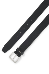 SIZE AND FIT The model wears a size 34 and is 6'2" tall with a, 37" chest, 29" waist and 37" hips. DETAILS Ronnie-C-BOSS_Sz35 - 50548370 Trimmed with a logo on the keeper, this 3.5cm BOSS Menswear belt is crafted in rich leather. Brushed silver-tone pin buckle. For the best fit, we advise ordering a belt one size larger than your waist size. Metal letters Width: 3,5 cm (1.4 inches) Hardware finishing: Brushed silver hardware Partially lined QUALITY & CARE INSTRUCTIONS Quality: 100% Cow leather