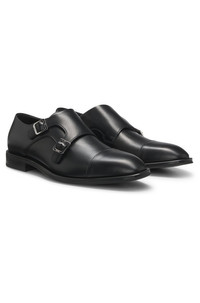 DETAILS Derrek_Monk_buctre - 50541305 Elevate any formal or business look with these modern monk shoes from BOSS Menswear. Italian-made in leather with a double strap and cap toe. Fastening top: Buckle closure Fully lined Sole: Leather/other material Packaging: Box QUALITY & CARE INSTRUCTIONS Upper material: 100% Calfskin, Lining: 100% Yak, Sole: 90% Thermoplastic polyurethane , 10% Leather, Innersole: 100% Yak
