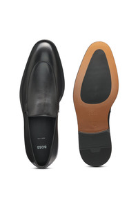 DETAILS Derrek_Loaf_buvp - 50534049 Finished with a classic apron toe, BOSS Menswear's Italian-crafted Derby shoes provide timeless formal polish. Leather uppers, anti-slip outsole. Fastening top: Slip-on Fully lined Sole: Leather/other material Packaging: Box QUALITY & CARE INSTRUCTIONS Upper material: 100% Calfskin, Lining: 100% Yak, Sole: 74% Thermoplastic polyurethane , 26% Leather, Innersole: 100% Yak