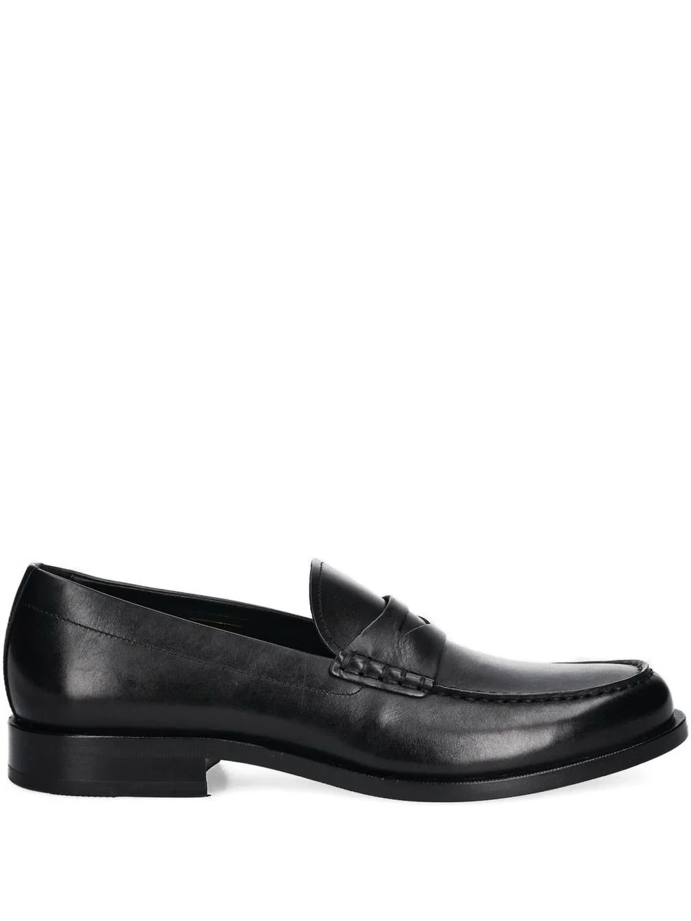 leather penny loafers Highlights - Black - Leather upper - Moc toe - Penny strap - Rubber sole Imported Composition Outer: Calf Leather 100%, Polyester 100% Lining: Calf Leather 100%, Polyester 60%, Polyurethane 40% Sole: Leather 100%