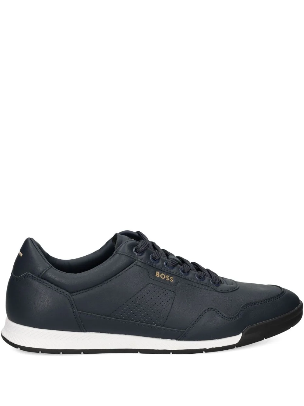 leather sneakers Highlights - Navy blue - Smooth grain - Contrasting rubber sole - Perforated detailing - Embossed logo detailing on the tongue Imported Composition Outer: Leather 100% Sole: Rubber 100% Lining: Polyester 100%