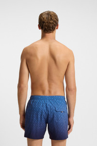 SIZE AND FIT The model wears a size M and is 6'2" tall with a, 36" chest, 31" waist and 38" hips. DETAILS Signature BOSS Menswear swim shorts, featuring a logo badge and monogram print in a degrade effect. This pair is crafted in naturally quick-drying fabric. Vale_Trunk - 50534343 QUALITY & CARE INSTRUCTIONS Do Not Iron Do Not Tumble Dry Machine Wash Cold Do Not Bleach Do Not Dry Clean Material: 100% Elastomultiester, Lining: 100% Polyester
