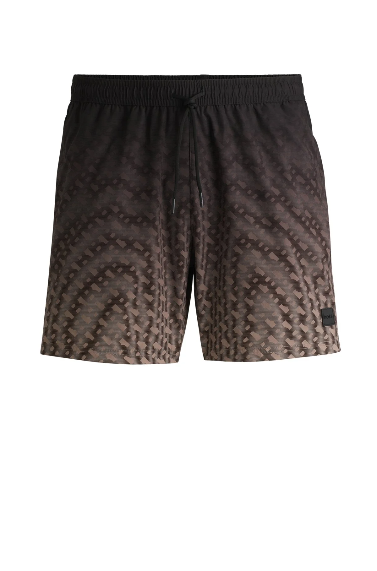 SIZE AND FIT The model wears a size M and is 6'2" tall with a, 38" chest, 29" waist and 38" hips. DETAILS Vale_Trunk - 50534343 Signature BOSS Menswear swim shorts, featuring a logo badge and monogram print in a degrade effect. This pair is crafted in naturally quick-drying fabric. QUALITY & CARE INSTRUCTIONS Machine Wash Cold Quality: 100% Polyester, Lining: 100% Polyester Do Not Iron Do Not Bleach Do Not Tumble Dry Do Not Dry Clean