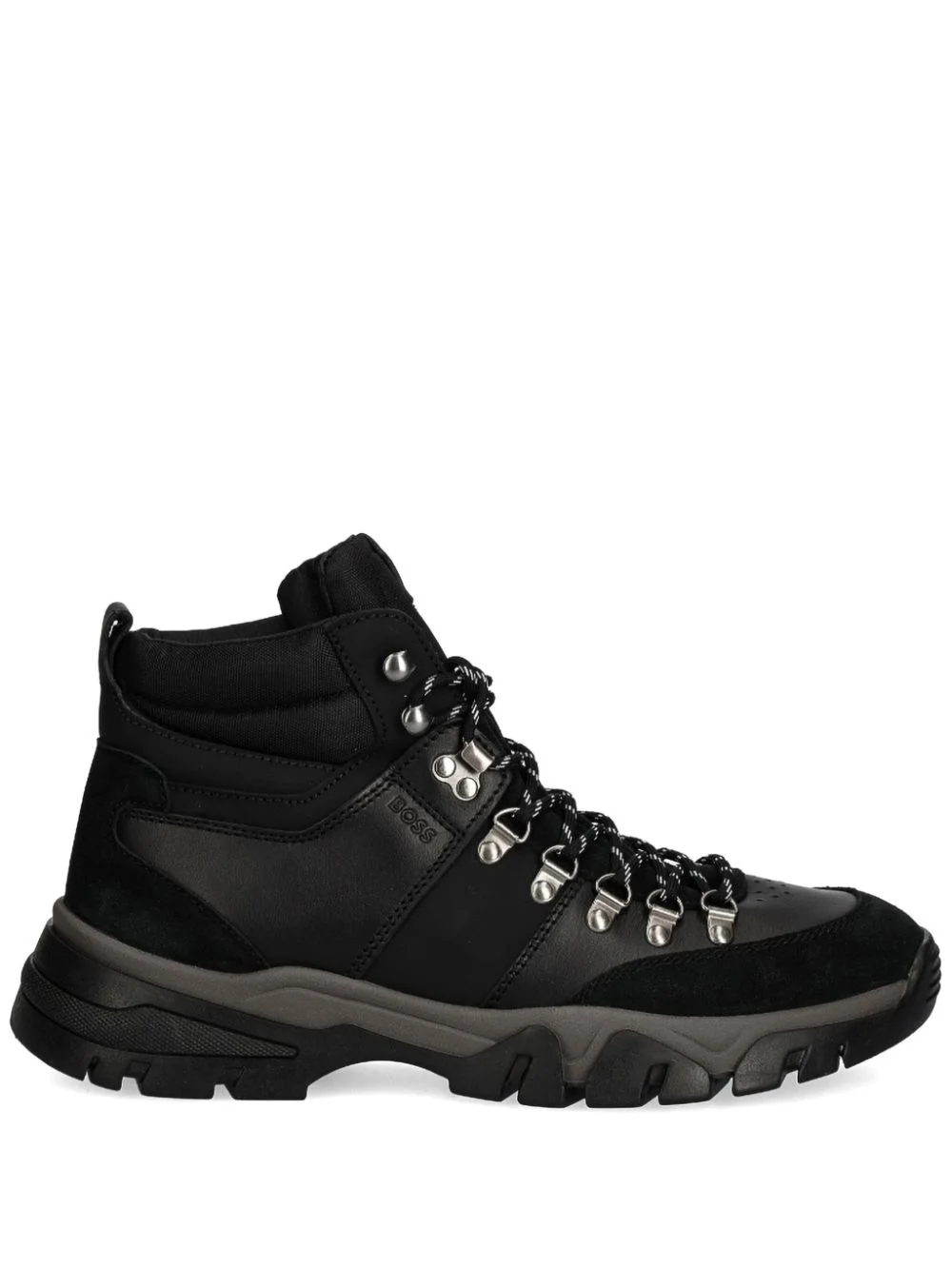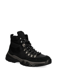 logo-debossed boots Highlights - Black - Calf leather - Panelled design - Suede panels - Debossed logo to the side - Front lace-up fastening - Pull-tab at the heel - Logo patch at the tongue - Perforated toebox - Round toe - Branded insole - Rubber sole Imported Composition Outer: Fabric 100%, Calf Suede 100%, Calf Leather 100% Lining: Fabric 100% Sole: Rubber 100%