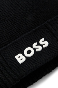 SIZE AND FIT The model wears a size pce. and is 6'2" tall with a, 37" chest, 29" waist and 37" hips. DETAILS Asic_Beanie-X - 50499423 Bring a signature touch to outerwear with this ribbed beanie hat by BOSS Menswear. Crafted in soft cotton blended with virgin wool. Rubber-printed logo. QUALITY & CARE INSTRUCTIONS Do Not Tumble Dry Reduced Dry Clean Iron Low Heat Do Not Bleach Quality: 80% Cotton, 20% Virgin wool Machine Wash Cold