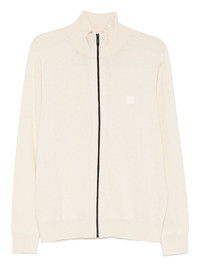logo-detail cardigan Highlights - Light beige - Front zip fastening - High neck - Logo patch - Long sleeves - Ribbed hem Imported Composition Cotton 95%, Cashmere 5% Washing instructions Read Manufacturer Guidelines
