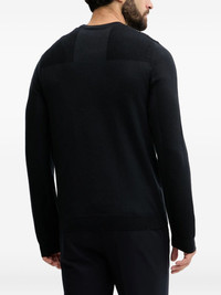 logo-detailed sweater Highlights - Navy blue - Textured panel - Logo detail - Round neck - Long sleeves - Ribbed hem Imported Composition Polyester 48%, Virgin Wool 39%, Polyamide 11%, Elastane 2% Washing instructions Machine Wash