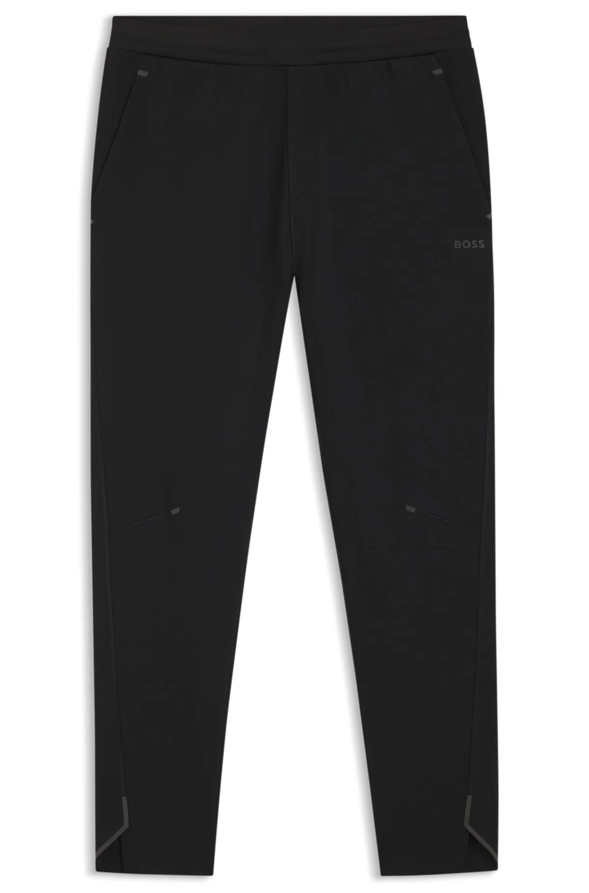 SIZE AND FIT The model wears a size M and is 6'0" tall with a, 36" chest, 31" waist and 35" hips. DETAILS Hicon Active - 50531239 Stay cool, dry and visible during workouts in these regular-fit BOSS Menswear tracksuit bottoms. Decorative reflective detailing. Moisture-managing stretch fabric. Secure zipped pocket. Regular fit Drawstring Pockets bottom front: Side pockets Pockets bottom back: Back zip pocket QUALITY & CARE INSTRUCTIONS Do Not Tumble Dry Quality: 92% Polyester, 8% Elastane Do Not Dry Clean Machine Wash Cold Gentle Iron Low Heat Do Not Bleach