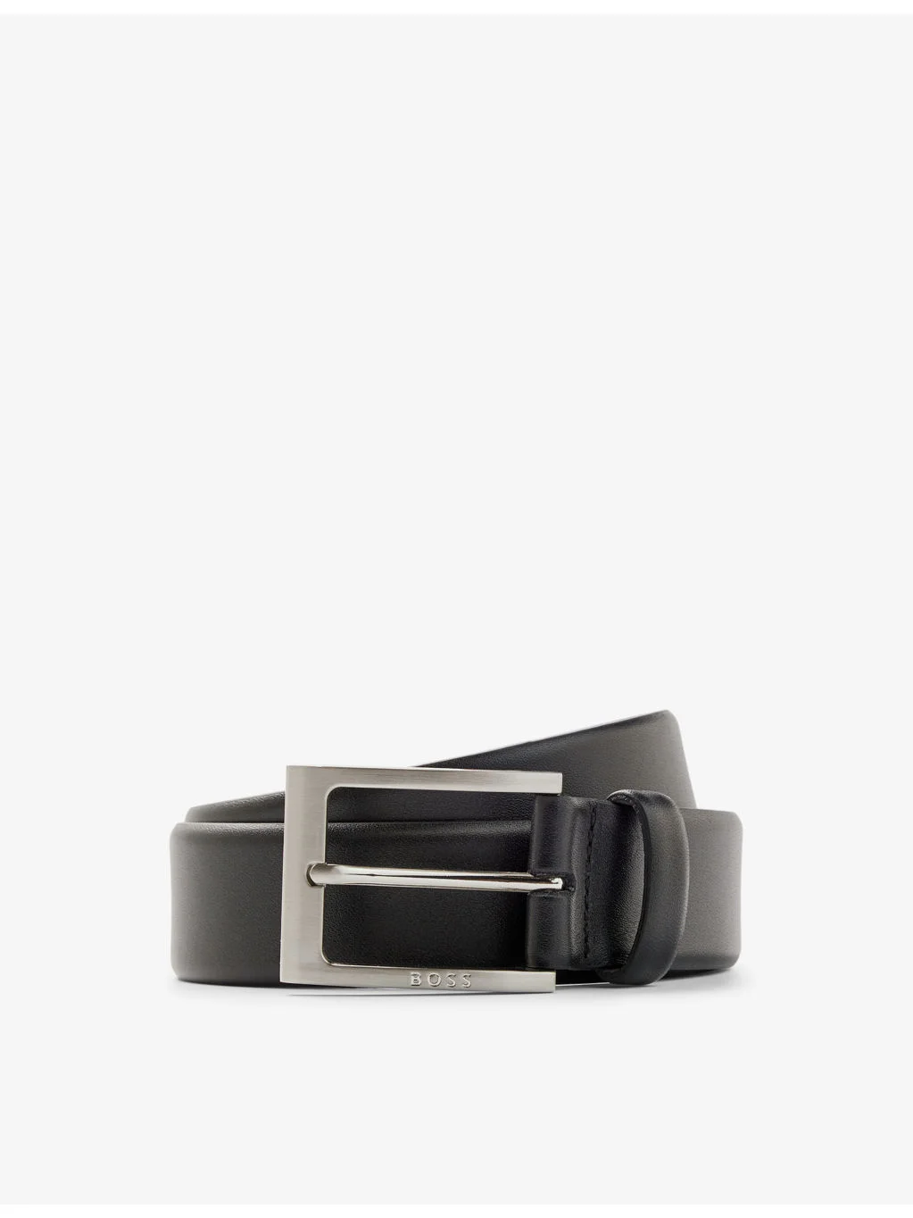 PRODUCT DETAILS - BOSS leather belt - 100% leather - Buckle fastening - Debossed branding at buckle, belt loop, five holes, smooth leather, debossed branding at reverse - Length 113cm