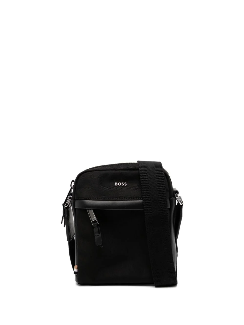 logo-embossed messenger bag Highlights - Black - Recycled polyester - Embossed logo to the front - Silver-tone hardware - Logo shoulder strap - Top zip fastening - Adjustable shoulder strap - Front zip-fastening pocket - Internal zip-fastening pocket - Main compartment Imported Composition Outer: Recycled Polyester 100% SIZE & FIT Model measurements Height 6 ft 1 in(1.85 m) Bust/Chest 35.43 in(90 cm) Hips 36.22 in(92 cm) Waist 28.74 in(73 cm) Measurement DEPTH 1.57 in(4 cm) HEIGHT 7.87 in(20 cm) STRAP 21.65 in(55 cm) WIDTH 6.69 in(17 cm)
