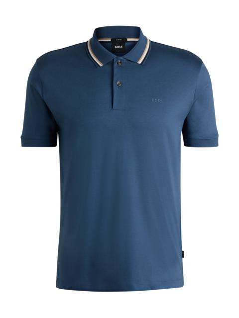SLIM-FIT POLO SHIRT IN COTTON WITH STRIPED COLLAR