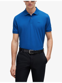 PRODUCT DETAILS - BOSS cotton polo shirt - 100% cotton - Exposed button fastening at neck - Regular fit, polo collar, logo embroidery at the chest, short sleeves - Machine wash cold - Model is 6ft 2in/1.88m and wears a size large - Lightweight, non-stretch Ref: R03853184