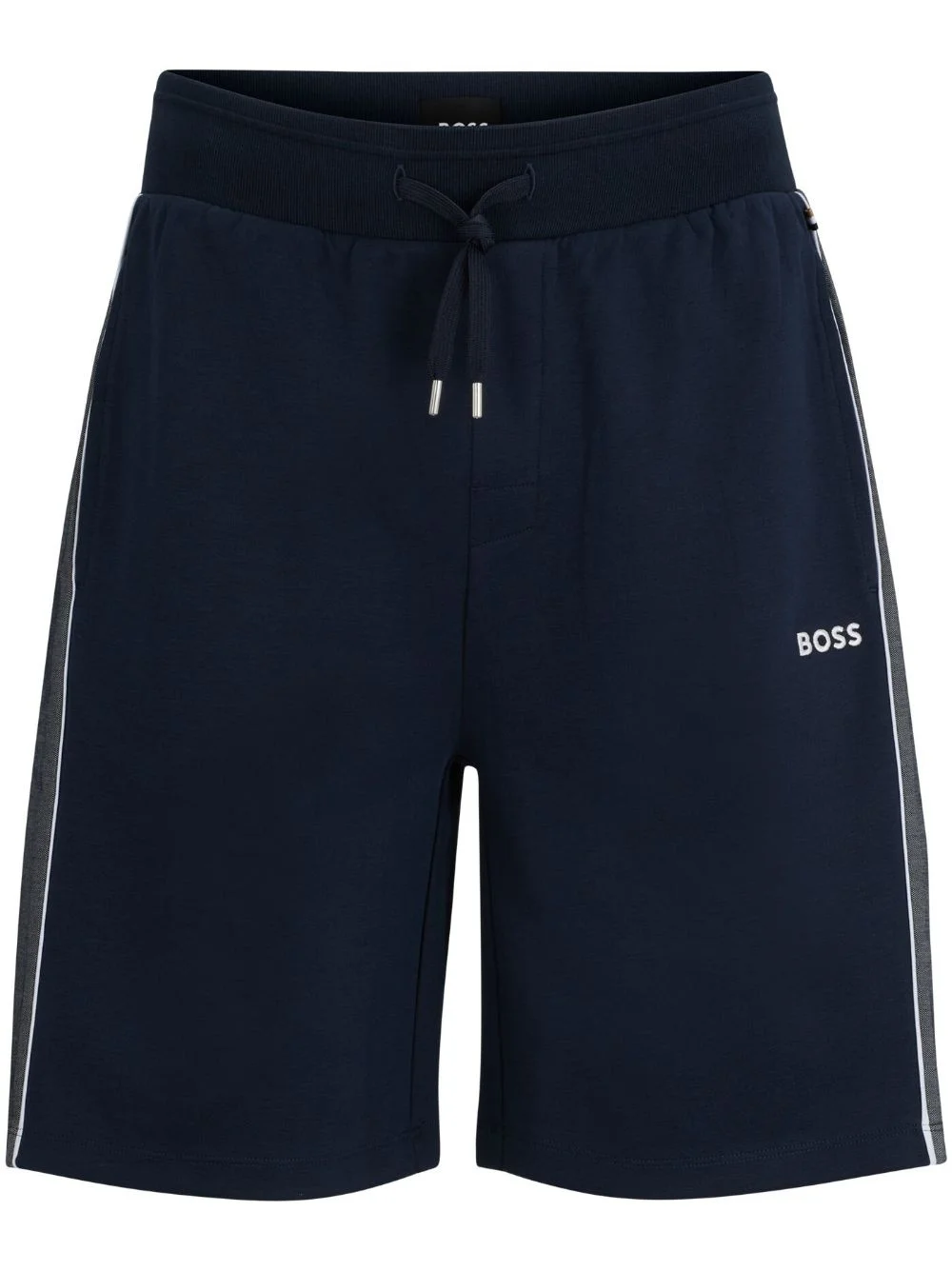 logo-embroidered track shorts Highlights - Midnight blue/medium grey - Cotton blend - Elasticated waistband - Side stripe detailing - Embroidered logo to the front - Two side slit pockets - Drawstring fastening Imported Composition Cotton 70%, Polyester 30%