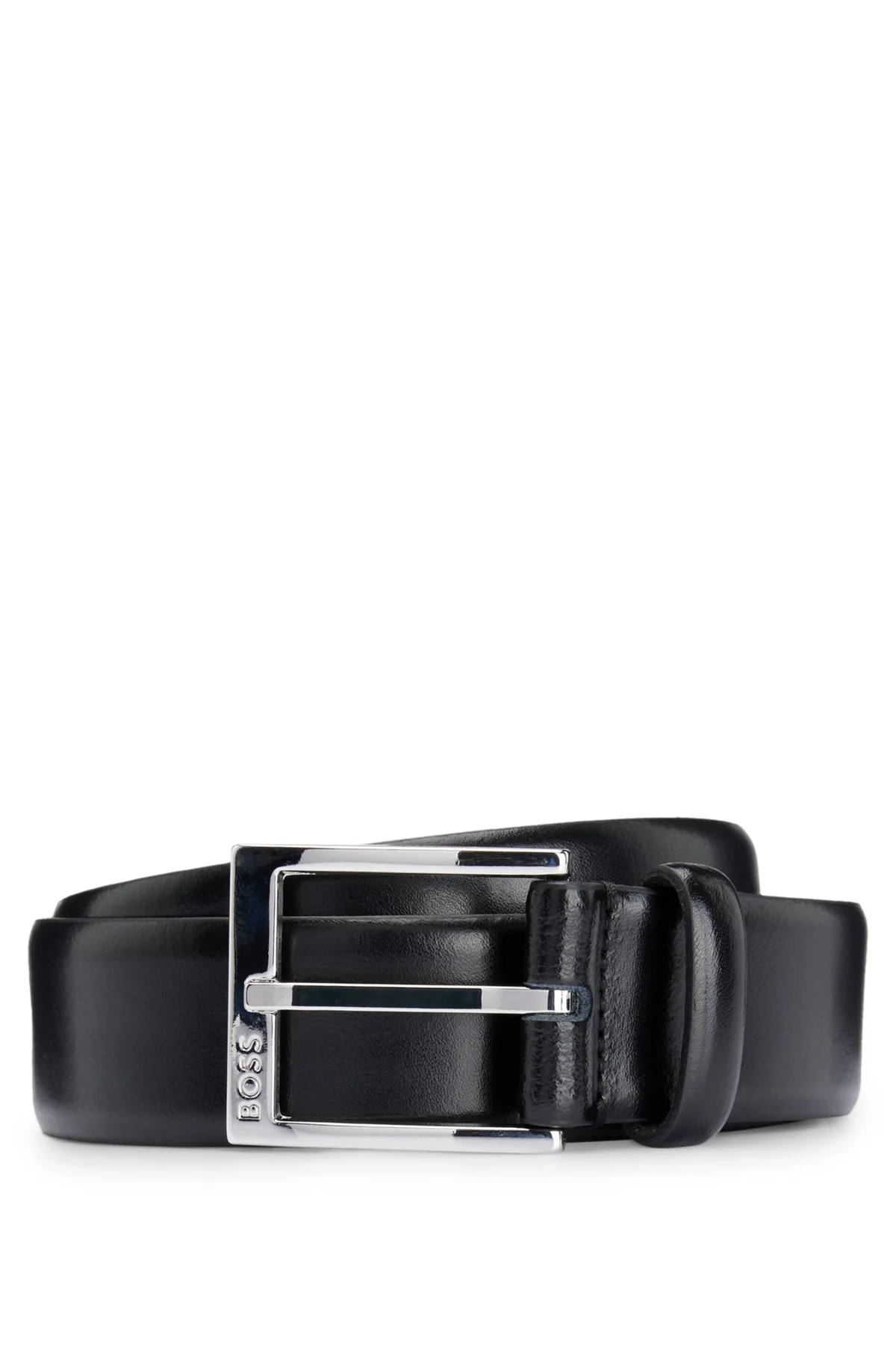 SIZE AND FIT The model wears a size 34 and is 6'2" tall with a, 37" chest, 30" waist and 37" hips. DETAILS Elloy-PC-An_Sz35 - 50482241 A refined 3.5cm belt made in Italy from smooth leather with a logo-engraved buckle in silver-tone hardware by BOSS. For the best fit, we advise ordering a belt one size larger than your waist size. Engraved logo on closure Width: 3,5 cm (1.4 inches) Hardware finishing: Polished silver hardware Partially lined QUALITY & CARE INSTRUCTIONS Quality: 100% Cow leather