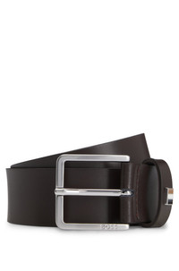 SIZE AND FIT The model wears a size 34 and is 6'2" tall with a, 34" chest, 28" waist and 37" hips. DETAILS Ther-Flag-E_Sz35 - 50486839 A modern belt with a 3.5cm width by BOSS. Crafted in Italian leather, this accessory features a signature-stripe trim on the keeper. For the best fit, we advise ordering a belt one size larger than your waist size. Engraved logo on closure Width: 3,5 cm (1.4 inches) Hardware finishing: Brushed silver hardware Partially lined QUALITY & CARE INSTRUCTIONS Quality: 100% Cow leather