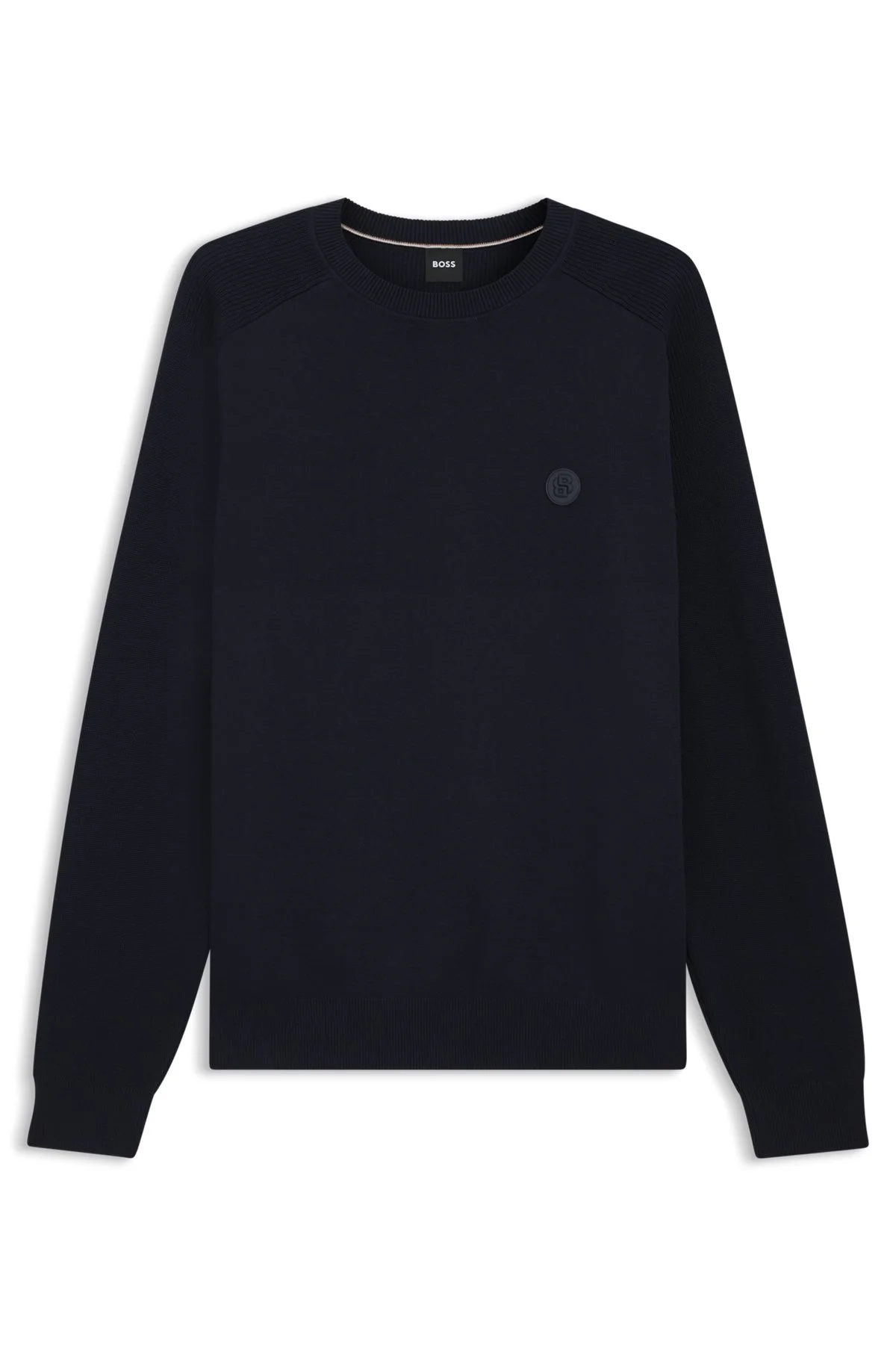DETAILS Trimmed with a Double B monogram, this BOSS Menswear sweater is knitted in soft cotton for comfortable layering. Regular fit Regular fit Neckline: Crew neck Long sleeves Standard length C-Illian - 50543136 QUALITY & CARE INSTRUCTIONS Material: 100% Cotton Do Not Dry Clean Cold, gentle machine wash; reduced spin speed. Do Not Bleach Iron Medium Heat Do Not Tumble Dry