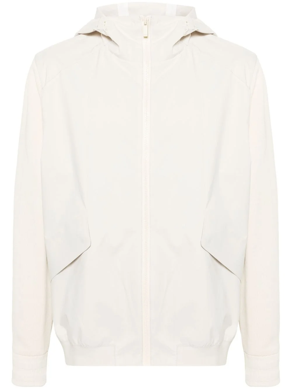 logo-patch hooded jacket Highlights - Light beige - Knitted panels - Logo patch at the sleeve - Drawstring hood - Front zip fastening - Long sleeves - Ribbed cuffs and hem - Two press-stud fastening side pockets - Straight hem Imported Composition Outer: Polyester 100% Lining: Polyamide 100%, Polyester 100% SIZE & FIT Model measurements Height 6 ft 2 in(1.88 m) Bust/Chest 36.61 in(93 cm) Hips 35.82 in(91 cm) Waist 27.95 in(71 cm) FittingInformation Designed for a relaxed fit, this piece allows for comfort and movement when worn The ribbed hem offers a close, comfortable fit Made from a midweight non-stretch fabric This piece fits true to size – take your usual size