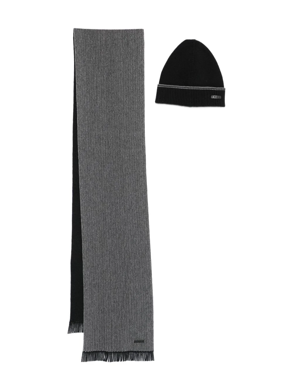 logo-patch scarf and beanie set Highlights - Black - Striped patter - Fringed trim - Logo patch - Turn-up brim Imported Composition Cotton 85%, Wool 15% SIZE & FIT Measurement LENGTH 77.16 in(196 cm) WIDTH 9.84 in(25 cm) Washing instructions Dry Clean Only