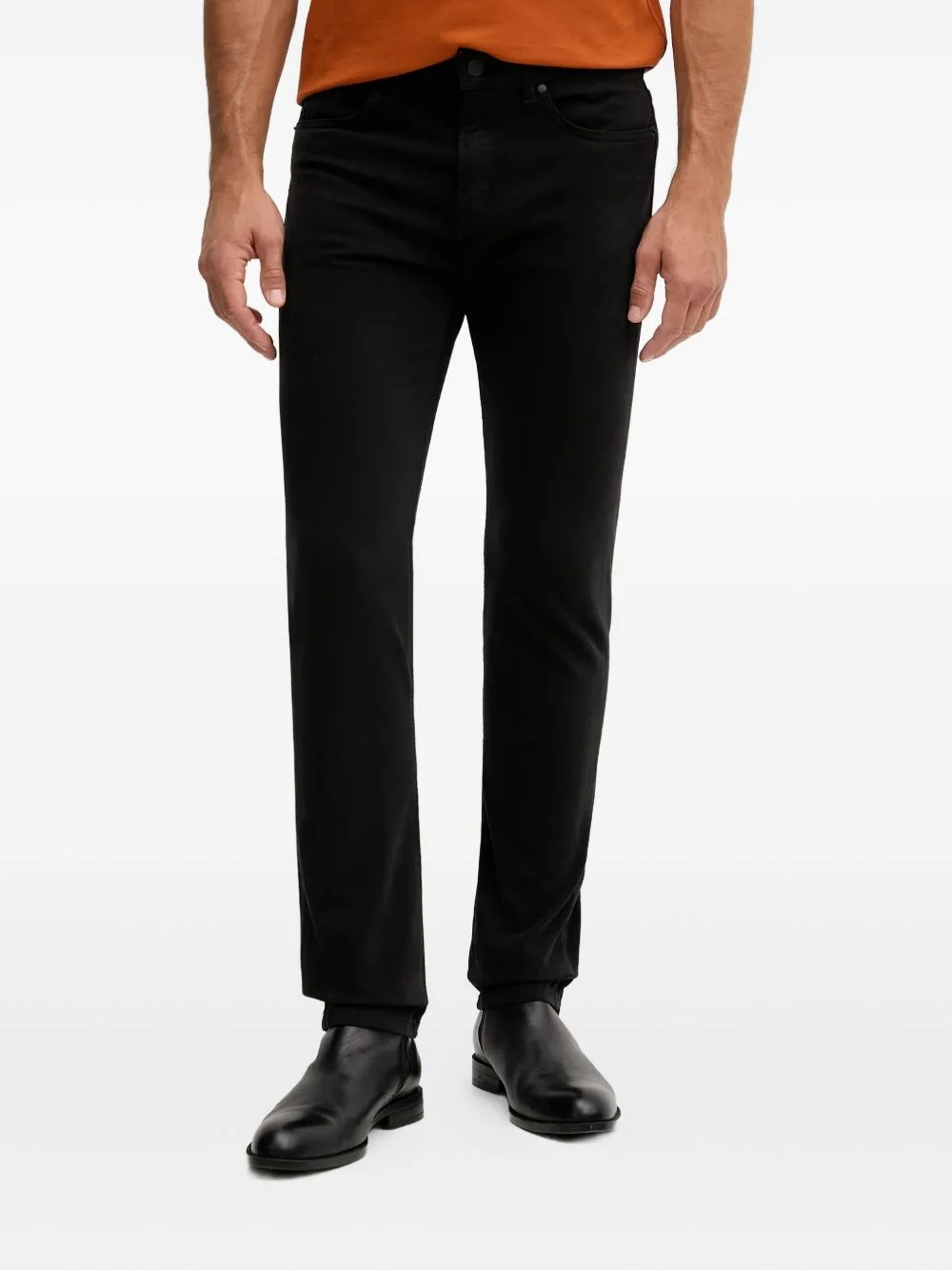 logo-patch slim trousers Highlights - Black - Logo patch - Five pockets - Belt loops Imported Composition Cotton 95%, Elastane 5% Washing instructions Machine Wash