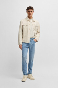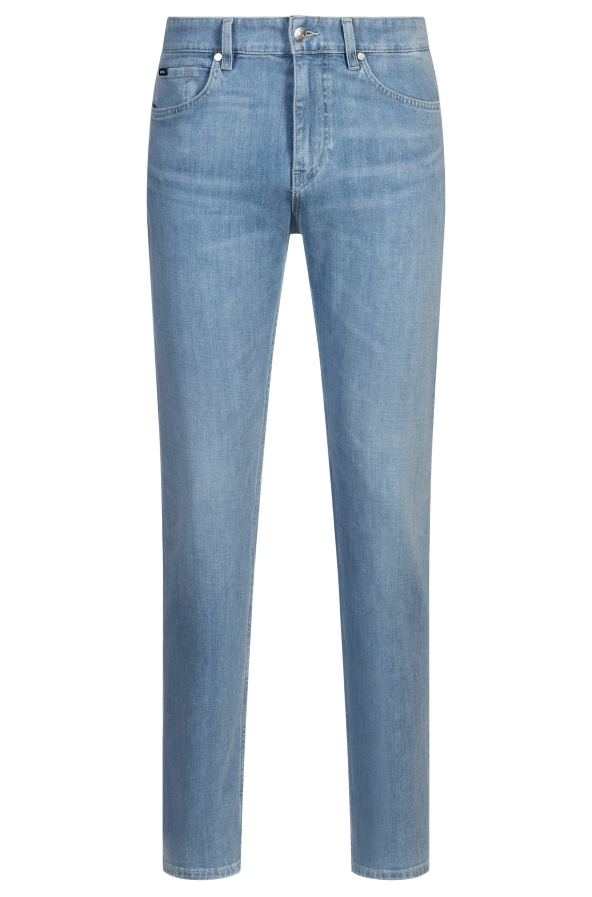 SIZE AND FIT The model wears a size 32/32 and is 6'1" tall with a, 37" chest, 29" waist and 35" hips. DETAILS C-Delaware - 50540483 With a clean fit and fresh blue tone, these BOSS Menswear jeans are crafted in extra-soft Italian-made denim. With stretch for shape recovery. Slim fit Regular rise Button and zip closure Pockets bottom front: Side pockets Slim leg Pockets bottom back: Patch pocket Standard length Fit foot width: 35,4 cm (13.9 inches) QUALITY & CARE INSTRUCTIONS Machine Wash Cold Gentle Do Not Dry Clean Iron Medium Heat Quality: 92% Cotton, 6% Elastomultiester, 2% Elastane Do Not Bleach Do Not Tumble Dry