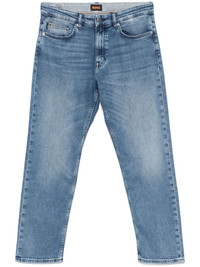 logo-patch straight-leg jeans Highlights - Imperial blue - Concealed fly and button fastening - Belt loops - Classic five pockets - Whiskering effect Imported Composition Cotton 98%, Elastane 2%