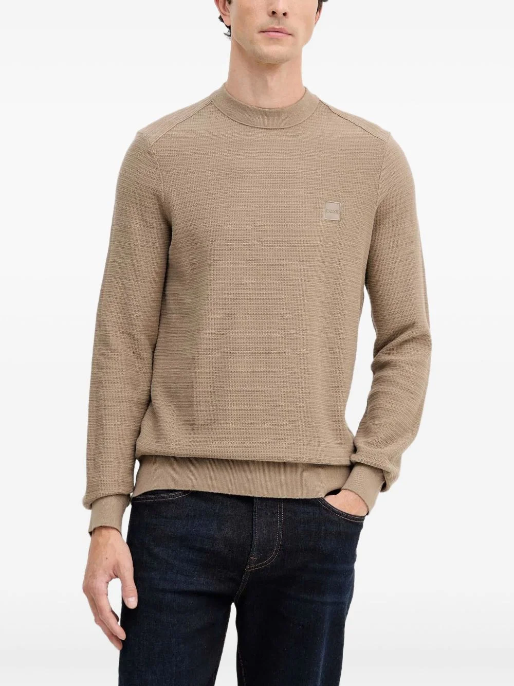 logo-patch sweater Highlights - Beige - Textured knit - Logo patch - Round neck - Long sleeves - Ribbed hem Imported Composition Cotton 95%, Cashmere 5% Washing instructions Machine Wash