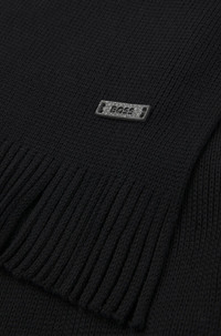 SIZE AND FIT The model wears a size pce. and is 6'1" tall with a, 39" chest, 31" waist and 35" hips. DETAILS With a matching hat available, this BOSS Menswear scarf is a cozy winter essential. Elegant Raschel-knit in virgin wool. Synthetic coated fabric logo plaque. Synthetic coated fabric, sometimes referred to as faux leather, is a fabric designed to resemble real leather, and/or display a matte, glossy, smooth, or textured, coated appearance. Measurements: 170 x 25cm Albas - 50495340 QUALITY & CARE INSTRUCTIONS Quality: 100% Virgin wool Iron Low Heat Do Not Tumble Dry Reduced Dry Clean Do Not Bleach Do Not Wash