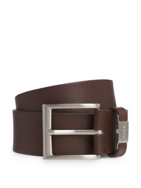 ITALIAN-LEATHER BELT WITH LOGO KEEPER AND BRUSHED HARDWARE