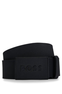 SIZE AND FIT The model wears a size 36 and is 6'1" tall with a, 37" chest, 30" waist and 37" hips. DETAILS Boss_Icon-S1_Sz40 - 50471333 A refined 4cm belt made in Italy by BOSS. Crafted in structured Italian leather, this accessory features a logo plaque buckle in black varnished hardware. For the best fit, we advise ordering a belt one size larger than your waist size. Partially lined Hardware finishing: Black varnished hardware Metal plate with engraved logo QUALITY & CARE INSTRUCTIONS Quality: 100% Cow leather
