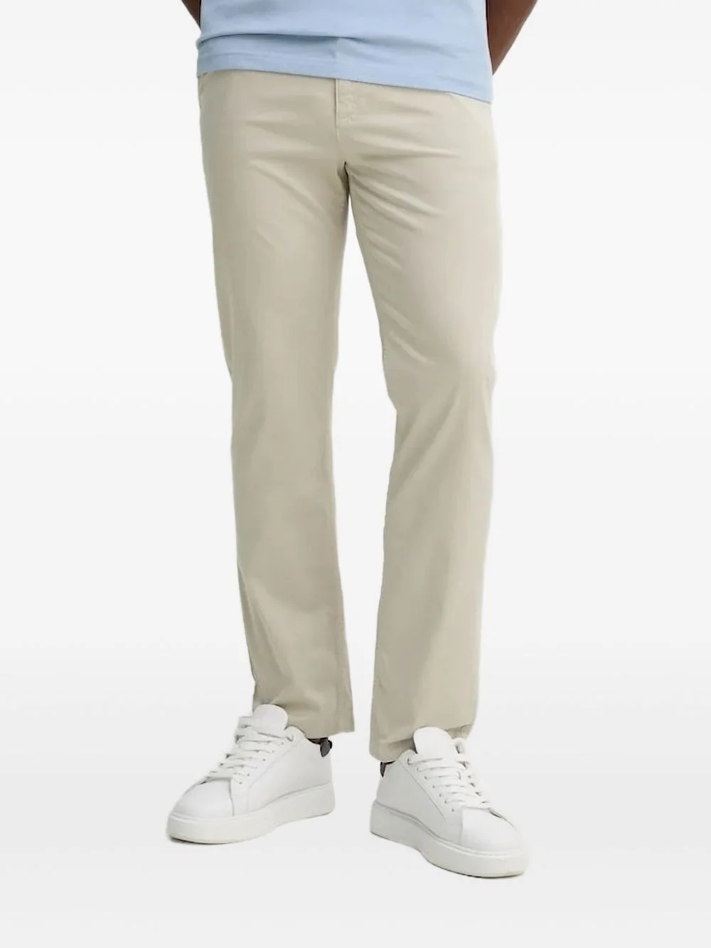 logo-plaque straight-leg trousers Highlights - Beige - Branded patch - Concealed fastening Imported Composition Cotton 97%, Elastane 3% Washing instructions Read Manufacturer Guidelines