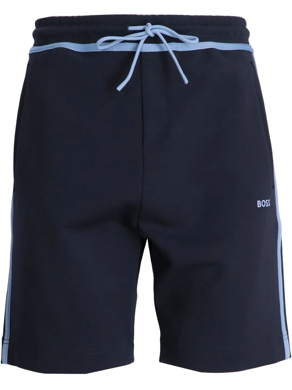 logo-print drawstring-waist shorts Highlights - Midnight blue - Two side slit pockets - Rear welt pocket - Contrasting trim Imported Composition Cotton 73%, Polyester 27%