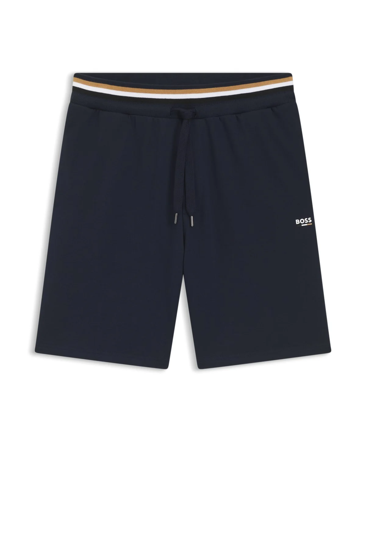SIZE AND FIT The model wears a size M and is 6'0" tall with a, 36" chest, 31" waist and 35" hips. DETAILS With signature-stripe and logo details, these BOSS Menswear shorts are ideal for off-duty comfort. Crafted in soft cotton terry with a straight leg. Covered waistband Drawstring Pockets bottom front: Side pockets Iconic Shorts - 50561493 QUALITY & CARE INSTRUCTIONS Machine Wash Warm Material: 100% Cotton Do Not Bleach Do Not Tumble Dry Do Not Dry Clean Iron Medium Heat