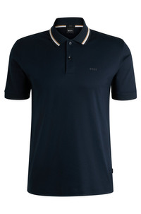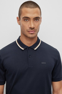 SIZE AND FIT The model wears a size L and is 6'2" tall with a, 39" chest, 30" waist and 36" hips. DETAILS Penrose 38 - 50469360 A luxurious polo shirt cut to a defined fit, by BOSS Menswear. Featuring signature stripes at the collar, this short-sleeved polo shirt is crafted in mercerized cotton for a super-soft feel and is printed with a tonal BOSS logo at the left chest. The side seam carries a branded flag for a distinctive finish. Slim fit Neckline: Flat-knit collar Number of buttons: 2 Short sleeves No cuffs Standard length QUALITY & CARE INSTRUCTIONS Iron Low Heat Machine Wash Cold Gentle Quality: 100% Cotton Do Not Bleach Do Not Tumble Dry Do Not Dry Clean