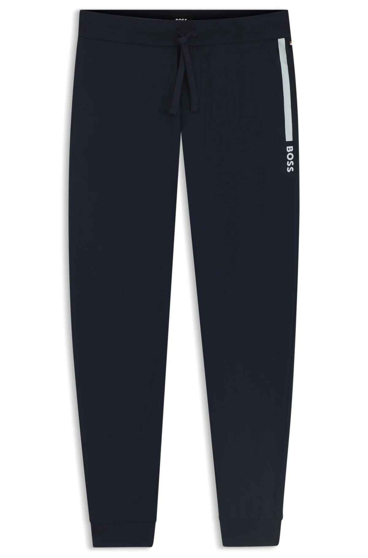 SIZE AND FIT The model wears a size M and is 6'0" tall with a, 38" chest, 29" waist and 38" hips. DETAILS With their contrast stripe and logo, these BOSS Menswear tracksuit bottoms add distinctive style to downtime. Cotton terry with cuffed hems. Covered waistband Drawstring Pockets bottom front: Side pockets Authentic Pants - 50545565 QUALITY & CARE INSTRUCTIONS Machine Wash Warm Material: 100% Cotton Do Not Dry Clean Do Not Bleach Do Not Tumble Dry Iron Medium Heat