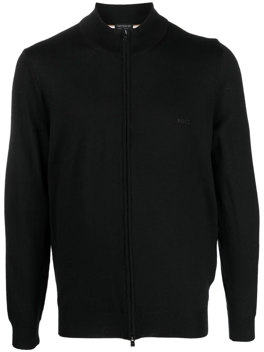 fine-knit zip-up cardigan Highlights - Jet black - Virgin wool - Fine knit - Logo print to the front - High neck - Front zip fastening - Long sleeves Imported Composition Virgin Wool 100% SIZE & FIT Model measurements Height 6 ft 2 in(1.87 m) Bust/Chest 35.82 in(91 cm) Hips 35.43 in(90 cm) Waist 27.95 in(71 cm) FittingInformation This piece fits true to size. We recommend you get your regular size Cut for a relaxed fit Made with a mid-weight fabric Washing instructions Machine Wash