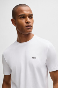 SIZE AND FIT The model wears a size M and is 6'2" tall with a, 38" chest, 29" waist and 36" hips. DETAILS Tee - 50506373 A regular-fit T-shirt by BOSS. Featuring a contrast logo at the chest, this top is created in cotton blended with stretch for comfort. Regular fit Neckline: Crew neck Short sleeves Standard length QUALITY & CARE INSTRUCTIONS Do Not Bleach Do Not Tumble Dry Do Not Dry Clean Quality: 95% Cotton, 5% Elastane Iron Low Heat Machine Wash Cold Gentle
