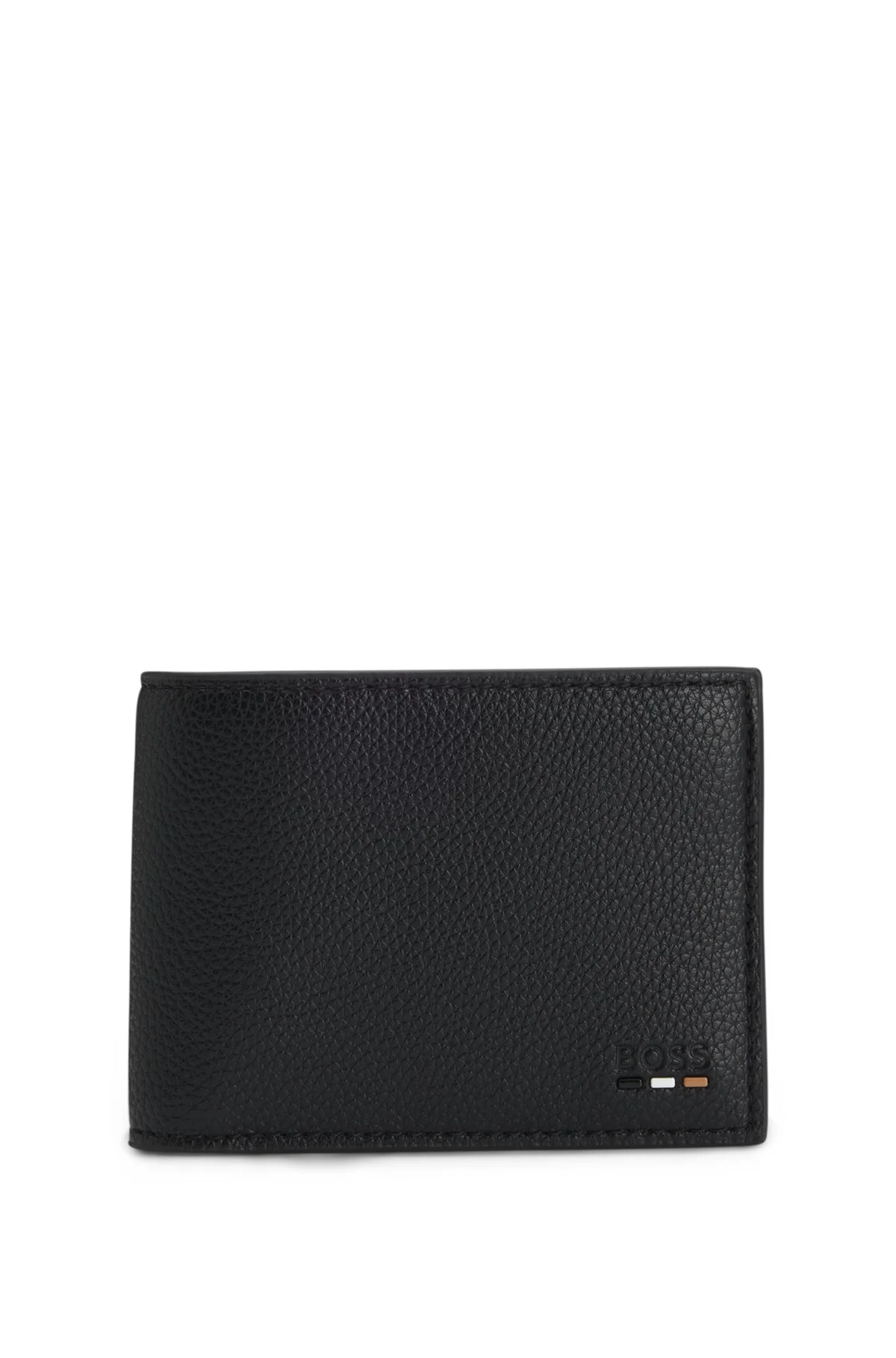 DETAILS Ray_6cc N. - 50536512 An understated folding wallet, detailed with embossed branding and a signature stripe, by BOSS Menswear. This accessory is crafted in grained synthetic coated fabric. Synthetic coated fabric, sometimes referred to as faux leather, is a fabric designed to resemble real leather, and/or display a matte, glossy, smooth, or textured, coated appearance. Measurements: 11 x 9.5 x 2cm Length: 11,0 cm (4.3 inches) Width: 2,0 cm (0.8 inches) Height: 9,5 cm (3.7 inches) QUALITY & CARE INSTRUCTIONS Quality: 70% Polyurethane (62% recycled), 30% Polyester, Lining: 100% Polyester