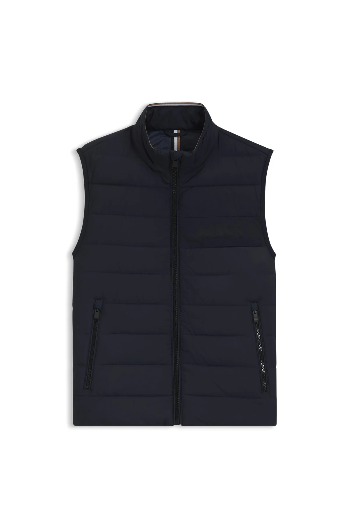 SIZE AND FIT The model wears a size EU:94 and is 6'1" tall with a, 36" chest, 28" waist and 36" hips. DETAILS H-Cenito - 50518375 A protective BOSS Menswear gilet for warming your core in the cold. A subtle logo adds character, while the regular fit is great for layering. Regular fit Stand collar Fastening top: Zip closure Pockets top: Zip pockets Inside welt pockets Fully lined Standard length Fit back length: 65 cm (26 inches) QUALITY & CARE INSTRUCTIONS Tumble Dry Low Heat Do Not Bleach Quality: 100% Polyester, Lining: 100% Polyamid, Filling: 100% Polyester, Insert: 100% Polyamid Machine Wash Cold Gentle Iron Low Heat Do Not Dry Clean