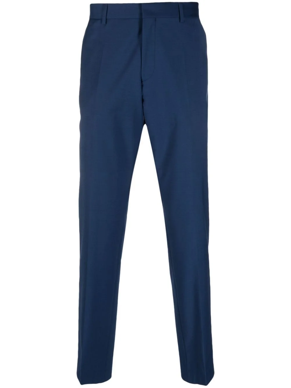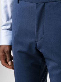 low-rise tailored trousers Highlights - Indigo blue - Virgin wool blend - Dart detailing - Concealed front fastening - Two side slash pockets - Two rear welt pockets - Tailored cut - Low-rise - Belt loops - Straight hem Imported Composition Outer: Virgin Wool 74%, Polyester 22%, Elastane 4% Lining: Viscose 100% SIZE & FIT Model measurements Height 6 ft 0 in(1.84 m) Bust/Chest 36.22 in(92 cm) Hips 35.43 in(90 cm) Waist 26.77 in(68 cm)