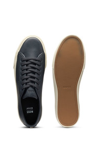 DETAILS Aiden_Tenn_sgrpu - 50547549 With their sporty rubber sole and low profile, these BOSS Menswear trainers will complete any outfit. Uppers in grained synthetic coated fabric. Embossed logo detail. Synthetic coated fabric, sometimes referred to as faux leather, is a fabric designed to resemble real leather, and/or display a matte, glossy, smooth, or textured, coated appearance. Laces Fully lined Packaging: Box QUALITY & CARE INSTRUCTIONS Upper material: 60% Polyurethane, 40% Polyester, Lining: 100% Polyester, 85% Polyester, 15% Polyurethane, Sole: 100% Rubber, Innersole: 100% Polyester